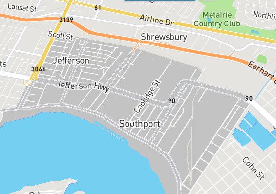 Our boundaries are the railroad tracks (Illinois Central Railroad) on the North, the Mississippi River to the South, Causeway Boulevard on the West, and Monticello Avenue on the East (at the Jefferson Parish and Orleans Parish line).